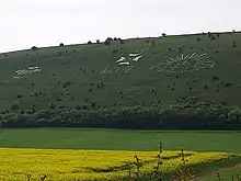 While quartered on Salisbury Plain, the men of the 3/6th cut their regimental badge into the turf of Fovant Down to reveal the white chalk beneath, making it visible from a long distance. The Maltese Cross badge and initials 'CLR' have been preserved, as have a number of badges subsequently cut by other regiments in the camp.[1][71]