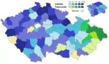 Sobotka also won voting in West Bohemia. More decisive victory was in Karlovy Vary region where Sobotka received 75% of votes. Voter turnout in region was only 19.3%.[25] Sobotka was leading the overall primaries with 1,523 votes (66%) while Tošenovský had only 794 votes (34%).[26]