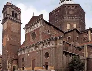 Civic Tower at Pavia cathedral (at left) before its collapse