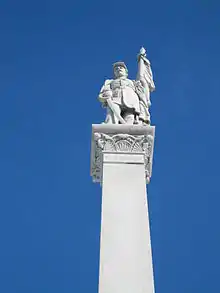 The DeKalb County Civil War Memorial and the sculpture that adorns it was created by an unknown sculptor and installed in front of the DeKalb County Courthouse in 1896.[2][3] The county-owned memorial stands on the public square in Sycamore, the county seat and is 50 feet (15.2 m) tall.[3] The structure was dedicated on June 24, 1897 as a memorial to the 2,388 people from DeKalb County who served in the military during the American Civil War.[3][4][5]