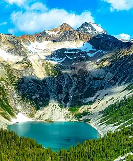 ![]() Southeast aspect, with Antimony Lake (Top of Skihist Mountain behind, right) | |