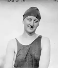 Claire Agnes Galligan (September 24, 1895 in New York – October 8, 1978 in Los Angeles, California[1]) was an American freestyle swimmer who won 13 AAU championships over distances ranging from 220 yd to 3 miles. In 1916 she became the first female AAU champion, and on September 13, 1917, she set a world record over 500 yd at 7:31.4. She missed the 1916 Olympics due to World War I, and by the 1920 Games was married to Edgar Finney[2] and retired from swimming. In 1970 she was inducted into the International Swimming Hall of Fame.[3]