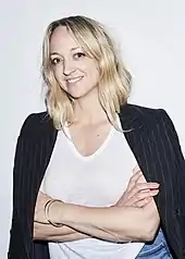 Claire Ptak is an American baker, food writer, and food stylist.[1] She owns and runs a bakery-café, Violet Cakes, in London's East End. Alongside running her own business, Ptak has also published an array of cookbooks and written a food column for the Guardian[2] and the Observer Food Monthly. She is widely known for having baked the royal wedding cake for the wedding of the Duke and Duchess of Sussex – a layered sponge filled and covered with a lemon and elderflower buttercream icing.[3]