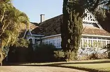 Three rooms with timber panelled ceilings are located on the western side of the house. In each room, French doors open out to the verandah on both the southern and northern sides, which, like the eastern side, are enclosed with timber louvres, while the ceiling is lined with horizontally joined timber.[1]