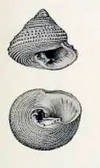 The height of the shell attains 9 mm, its diameter 12 mm. A pale brownish-pink-coloured Clanculus, with obscure pink spotting basally. It is depressedly conical, narrowly umbilicate, the umbilical region coarsely crenate. It is six- or seven-whorled, the three lowest whorls possessing, firstly, three rows of close spiral fine granules followed by others which have a fine spiral line dividing them, the interstices being very finely obliquely striate. Next, on the body whorl, below the periphery, the many—about 13—spiral rows of granules are quite close together, with no intermediary lines. The aperture is obliquely rotund. The outer lip is a little effuse, with four or five spiral short lirae just within the orifice. The columella is plicatulate above, and with a strong toothlike plait at the base.[2]