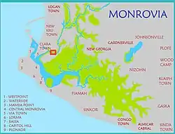 - ↑ "Maps of Major Streets in Monrovia". Archived from the original on 16 May 2008. Retrieved 8 December 2008.