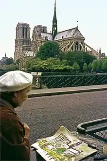 Clara Vogedes in front of Notre-Dame, Paris, April 1976