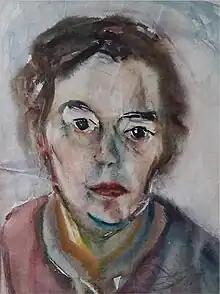 In her husband's portrait (1929) and in her self-portrait "The Painter" (1933) can be seen to the full her mastery of watercolour painting technique, "which requires great concentration and skill, as once the colour has been applied, amendments are hardly possible."[2] Shortly before the end of the war the family moved to Paderborn, where the city in ruins and the cathedral became her main topics.