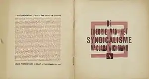 She became an activist in the prison abolition movement and campaigned against punitive justice, which she described as "a blot of backwardness, coarseness, shallowness and harshness."[4] In 1919, she established the Comité van Actie tegen de bestaande opvattingen omtrent Misdaad en Straf (English: Committee of Action against the existing views on Crime and Punishment) and co-founded the Bond van Revolutionair Socialistische Intellectuelen (English: Union of Revolutionary Socialist Intellectuals).[2][4] On 21 March 1920,[1] she gave a public speech in which she asserted that crime was rooted in social injustice, and that equitable social relations would make almost all criminal acts disappear.[1][4] That same year, she co-founded the Bond van Religieuze Anarcho-Communisten (English: Union of Religious Anarcho-Communists).[2][4] She wrote numerous articles for the organisation's newspaper, De Vrije Communist (English: The Free Communist),[2][4] in which she called for strike actions as a means of non-violent resistance against social injustice.[4]