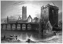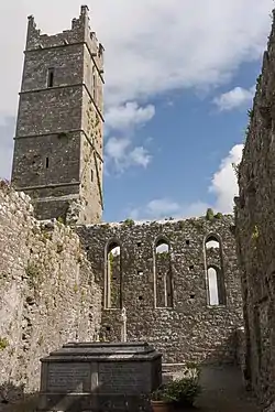 In 1326, John Magnus de Cogan (John de Cogan III) is recorded as calling himself the founder of the friary. This is understood as either he was the monastery's patron or he substantially enlarged the monastery.[3] The Franciscan community at the abbey lived under the patronage of the de Cogan clan until 1327, after Magnus de Cogan gave them the building and surrounding lands. In return for this favour, the monks were asked to present a rose to de Cogan and his descendants on the Nativity of John the Baptist. The friary was renovated in the 15th century, at which point the tower and the chancel's east window were added.[4]