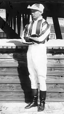 In the early 1920s, Clarence Turner was a contract rider for Joseph E. Widener and a few years later rode Stromboli to several of his important wins for owner August Belmont Jr.[1][2] In the pre-Triple Crown era, Turner had three mounts in the Kentucky Derby with his best result a third-place finish in 1925 aboard Son of John. He had six rides in the Preakness Stakes, winning the 1912 edition with Frank J. Nolan's Colonel Holloway.[3] The following year he almost won his second straight Preakness when he finished second by a neck to winner, Buskin.