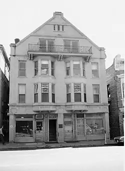 The former Mills Studio building is located Charleston's old city, on the south side of Broad Street just west of Church Street. It is a four-story masonry structure, built out of stuccoed brick. Its front facade is now commercial, with store fronts on the ground floor, projecting bay windows on the second and third floors. The interior is also reflective of its modern uses, having been converted into professional offices around the turn of the 20th century.[4] The building was originally built as a tenement house, and had two tenants in the 1830s, one of whom, Erastus Bulkeley, maintained a yard nearby from which he sold marble. When the other tenant moved out in 1837, Clark Mills rented that space, and established his residence and studio there.