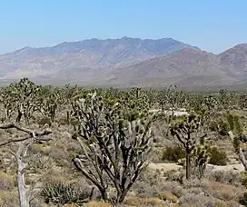 ![]() The entire range is visible on the skyline seen from Cima Dome to the southwest. | |
