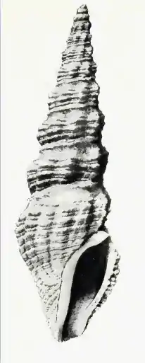 (Original description) The slender, acute shell is pale brownish. The protoconch is smooth regularly increasing containing 2½ whorls. The teleoconch contains 8½ subsequent whorls. The suture is closely appressed with a cord-like edge behind the strongly constricted, arcuately striated anal fasciole. The spiral sculpture consists of (on the penultimate whorl about seven) flattish, close-set cords. In some specimens these alternate in size, in others they are nearly equal. On the body whorl there are about 25, some irregularly larger than the others, and a few smaller threads on the siphonal canal . The axial sculpture consists of (on the body whorl 10 to 14) rounded ribs with subequal interspaces, more conspicuous and less numerous as we ascend the spire, over which the spiral sculpture passes without nodulation. The aperture is short, subovate. The anal sulcus is short rounded, with a subsutural callus. The outer lip is arcuate, thin, smooth inside, without any marked varix behind it. The inner lip and columella show a smooth callus. The siphonal canal is short and slightly recurved.[1]