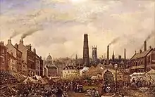 - ↑ "Fair Day in the Morledge" exhibited in 1882, by T. C. Moore: Derby Mercury 31-05-1882. Available from the "19th Century British Library Newspapers" archive, which can by accessed from some main libraries.