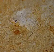 Fossils have shown a carapace covering the bulk of its body, with compound eyes, possible gills, and also "raptorial appendages" controlled by "substantial striated muscles".[2]