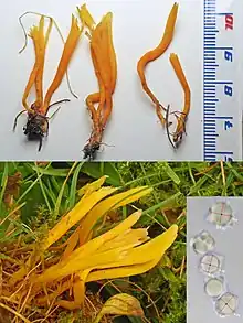 | Clavulinopsis helvola fruit bodies and spiny spores | |