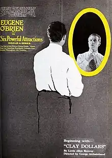 Clay Dollars is a 1921 American silent drama film directed by George Archainbaud and starring Eugene O'Brien, Ruth Dwyer and Frank Currier.[1] It was shot at studios in Fort Lee, New Jersey.
