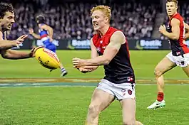 Clayton Oliver (born 22 July 1997) is a professional Australian rules footballer playing for the Melbourne Football Club in the Australian Football League (AFL). A midfielder, 1.89 metres (6 ft 2 in) tall and weighing 87 kilograms (192 lb), Oliver is known for his capabilities on the inside due to his handball and clearance work. He was a late bloomer in his junior career, where he struggled to play in the TAC Cup in 2014 and he missed selection in the 2015 AFL Under 18 Championships. After playing with the Murray Bushrangers in 2015, his achievements included best and fairest wins for the league and the Murray Bushrangers, which resulted in Melbourne drafting him with the fourth selection in the 2015 AFL draft. He made his debut in the 2016 season, which garnered a Rising Star nomination. After his second season in the AFL, he was adjudged the best young player by the AFL coaches.
