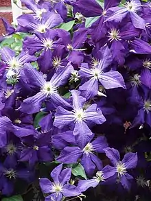 Clematis 'Jackmanii' is a Clematis cultivar which, when it was introduced in 1862, was the first of the modern large-flowered hybrid clematises of gardens. It is a climber with large violet-purple blooms, still among the most familiar climbers seen in gardens. It was produced from crosses made by the prominent nurseryman George Jackman (1837–1887),[1] of Jackman & Sons, Woking, Surrey.