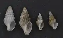 | Four shells of Clionella semicostata (museum specimens at Naturalis Biodiversity Center) | |
