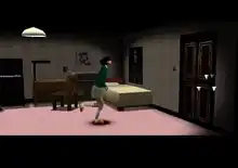 When Alyssa is being chased or is in danger, the cursor will flash red. During this panic mode, the player must rapidly tap a button to escape. When escaping enemies, click points will appear on items or objects that Alyssa can use to fight back or hide from the enemy. Escape mode will not end until the enemy is repulsed or successfully evaded.[3]: 9–10 If playing as Mr. Bates, the player may use weapons such as pistols and shotguns against the enemies.[4][3]: 12–13 When equipped with a weapon, the cursor becomes a crosshair used to aim and shoot. The cursor changes color during panic mode from white, to yellow, and finally red to indicate Alyssa's stamina. First aid kits can be used to improve stamina by one level.[3]: 12–13 If Alyssa's stamina reaches zero or the player fails a panic scenario, the screen will read "game over" and provide the player the option to restart from the last room they entered with one extra stamina level.[3]: 14