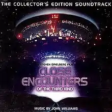 Close Encounters of the Third Kind (Original Motion Picture Soundtrack) is the film score to the 1977 film of the same name, composed and conducted by John Williams. The soundtrack album was released on vinyl album (with a gatefold sleeve), 8-track tape and audio cassette by Arista Records in 1977, with a total running time of 41 minutes (it was later released on compact disc in 1990). The soundtrack album was a commercial success, peaking at #17 on the US Billboard album chart in February 1978 and was certified Gold by the RIAA for 500,000 copies shipped.[3] It also peaked at #40 in the UK album charts.[4]
