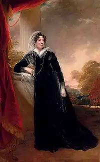 Calverley Bewicke (1755–1815) built Close House in 1779. He was the eldest son of Sir Robert Bewicke (1728–1771) and inherited the Close Estate when his father died in 1771. He was lieutenant colonel of Durham militia and Member of Parliament for Winchelsea. He married Deborah Wilkinson in 1777 but unfortunately she died two years later. In 1781 he married Margaret Spearman[1] whose portrait by Sir William Beechey is shown. She is standing by the window holding a portrait of her deceased husband Calverley in her right hand.