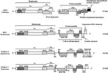 | Crinivirus | Plants | None | Viral movement; mechanical inoculation | Viral movement | Cytoplasm | Cytoplasm | Mechanical inoculation: insects |