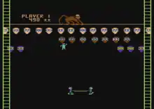 Clowns and Balloons is a circus-themed video game written by Frank Cohen for the Atari 8-bit family and published in 1982 by Datasoft.[1][2] The game was also released for the TRS-80 Color Computer, written by Steve Bjork.[3][4] It is a clone of the 1977 arcade game Circus. A variant of Breakout, the player moves a trampoline to catch a bouncing clown who pops rows of balloons at the top of the screen with his head.