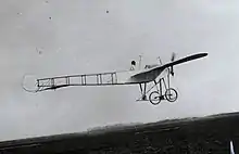 In 1911, he set out to build his first airplane, an airplane he named "Silverwing".[5] His first design was a monoplane, constructed of spruce and linen and which took the form of an American version of the Bleriot XI. The engine was a modified Elbridge motorboat motor, dubbed the "aero special", which was a 2-stroke, 4-cylinder engine with a maximum of 40 hp (30 kW) and 1,050 rpm.[5] Upon completion, he sought to test the aircraft at the Great Salt Plains (adjacent to the Salt Plains National Wildlife Refuge) in Alfalfa County, Oklahoma. His first attempt at flight ended in a ground loop, which required $100 to repair. After repairs, Cessna attempted flight 13 more times, each time ending in some sort of failure. Finally on his 13th attempt, Cessna got a glimpse of hope as his aircraft bounced up into the air for a short time before crashing into the trees as he attempted to turn it. After his crash, Cessna exclaimed in frustration, "I'm going to fly this thing, then I'm going to set it afire and never have another thing to do with aeroplanes!". Finally, in June 1911 Cessna had his first successful flight. The crowds that had scoffed at his failures changed their tone and began calling him a "daring hero" and nicknamed him the "Birdman of Enid".[8] Cessna continued to teach himself how to fly over the next several months until December 1911, when he made a successful 5-mile (8.0 km) flight and a successful landing at the point of departure.[5] He was the first person to build and fly an airplane in the Heartland of the United States—between the Mississippi River and the Rocky Mountains.[9]