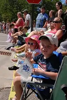 Children wave the flag of the United States Coast Guard during the Grand Haven, Michigan Coast Guard Festival Parade in 2013. In 1998 Grand Haven became the first city designated a "Coast Guard City."