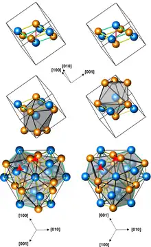 ![]() Structures of left-handed and right-handed cubic CoGe crystals (3 presentations, with different numbers of atoms per unit cell; orange atoms are Ge) | |