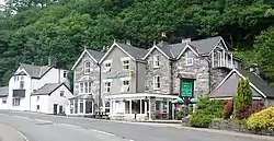 The hotel is on the A5, a major road through North Wales, to the east of the village centre and the junction with the A4086 to Llanberis. It is next to the banks of the River Llugwy, and in the Snowdonia National Park.[1][2] The grounds of the hotel extends out to the river. It is also a popular stopping point for canoeing along the river.[3]