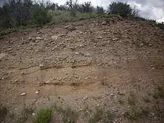 ![]() Cochiti Formation in road cut at Kasha-Katuwe Tent Rocks National Monument | |