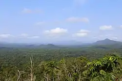The principal forest type is tropical moist broadleaf forest, which covers moderate to steep slopes,[6] and in some cases sheltered mountain valleys. While much of this forest is secondary due to Mayan era farming as well as modern logging, some of the steeper reaches exhibit primary forest characteristics. Dominant trees in this forest type are mahogany (Swietenia macrophylla) and cedar (Cedrela odorata), which were prized and hence heavily logged from the early 1900s to late in the 20th century.