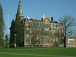 Coeymans School, also known as Acton Civill Polytechnic Institute, is a historic school building located at Coeymans in Albany County, New York. It was built in 1874 and is a rectangular brick building with a mansard roof with slate shingles. It is three stories tall, five bays wide and eleven bays deep. It features an unusual number of cast iron architectural details including the water table, quoins, window labels, balustrade, towers, and chimney. The building was originally built by Acton Civill (1804-1889) to house a polytechnic institute. In 1899, the local board of education purchased the building and used it for instructional purposes until 1963.[2]