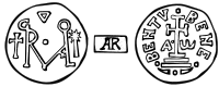 The third type[14] had in the field the letters P ADL R (Adelchi Princeps) arranged in three lines to form a cross, surrounded by the legend + SANCTA MARIA.[15]