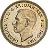 Portrait of King George VI. Designed by Thomas H. Paget. | Ram's head facing left, "AUSTRALIA" above, two Federation stars, "SHILLING" and year below. Designed by George Kruger Gray. | 1938 | 1938–1944 | ||||||