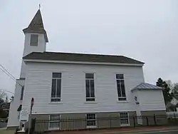 Cokesbury United Methodist Church is a historic Methodist church located at 13 Market Street in Onancock, Accomack County, Virginia. It was built in 1854, as a one-story, Greek Revival-style temple-front frame church. It was enlarged with a four-story, Gothic Revival entrance / bell tower with spire in 1886 and remodeled in 1892–1894. Surrounding the church on two sides is the church cemetery containing a selection of marble tombstones.[3]