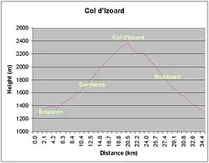 - ↑ "Col de l'Izoard: Briançon". www.climbbybike.com. Retrieved 21 July 2014.