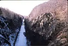Colby Cut (also known as Roseville Cut) is one of a number of cuts on the Lackawanna Cut-Off railroad line in northwest New Jersey. Located between approximately mileposts 51.8 and 52.3 in Byram Township, the cut was constructed between 1908 and 1911 by contractor David W. Flickwir. (During construction, Lackawanna Railroad Chief Engineer, Lincoln Bush, would leave the railroad and join Flickwir's construction company to form the Flickwir & Bush construction company.) The cut, which was created by removing fill material obtained by blasting with dynamite or other methods, is 0.53 miles (0.85 km) long, has an average depth of 45 feet (14 m), and a maximum depth of 110 feet (34 m). The cut was the result of the removal of 462,342 cubic yards of fill material within this section.
