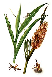 - ↑ Coleman, Leslie (1911). The Jola or Deccan Grasshopper (Colemania sphenarioides, Bol.). Entomological series. Government of Mysore.