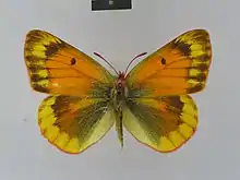 - ↑ Josef Grieshuber & Gerardo Lamas (2007). "A synonymic list of the genus Colias Fabricius, 1807 (Lepidoptera: Pieridae)" (PDF). Mitteilungen der Münchner Entomologischen Gesellschaft. 97: 131–171. Archived from the original (PDF) on 2016-03-04. Retrieved 2013-05-16.