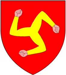 Canting arms[18] of Tremayne of Sydenham: Gules, three dexter arms conjoined at the shoulders and flexed in triangle or the fists clenched proper[19]