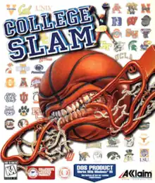 College Slam is a college basketball video game published by Acclaim. It was released for the Super NES, Genesis, Game Boy, Sega Saturn, PlayStation, and PC. It includes most major Division I colleges, but some, such as the University of Tennessee, the University of Notre Dame, and Mississippi State University (who had just made a run to the Final Four that year), are not included. The player can play tournaments, a season, or a single game. Many gaming critics accused it of being a thinly veiled repackaging of NBA Jam.[1][2][3][4]