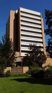 The BYU College of Family, Home, and Social Sciences is a college located on the Provo, Utah campus of Brigham Young University and is housed in the Spencer W. Kimball Tower and Joseph F. Smith Building.[1] The BYU College of Family Living was organized on June 28, 1951, while the BYU College of Social Sciences was organized in 1970.[2] These two colleges merged to form the current college in 1981.[3] The first dean of the college was Martin B. Hickman.[4] The college includes nine major departments: Anthropology, Economics, Geography, History, Political Science, Psychology, The School of Family Life, Social Work, and Sociology. There are 21 different majors and 21 different minors that students can choose from, including 9 majors that have a correlating minor.