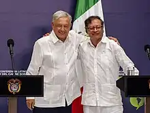 In July 2021, Colombian Vice-President and Foreign Minister Marta Lucía Ramírez, paid a visit to Mexico and met with her counterpart Marcelo Ebrard to reaffirm their commitment to strengthening both nations' joint bilateral relations mechanisms.[5] In November 2022, Colombian President Gustavo Petro paid a visit to Mexico and met with Mexican President Andrés Manuel López Obrador. During the visit, Mexico was asked to and accepted the invitation to become a guarantor country in negotiations between the Colombian government and the National Liberation Army (ELN).[6]