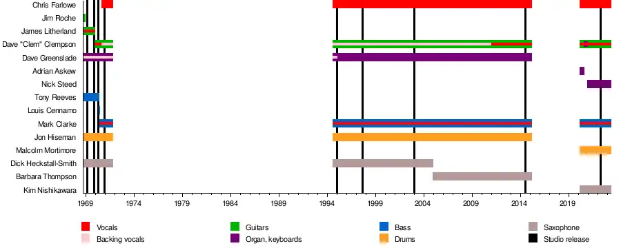 | Paul Williams | 1999 (died 2019) | vocals | live substitute for Chris Farlowe |