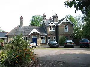 The railway line from Wroxham to County School opened in 1880, with a station at Coltishall. This was a branch line, joined at County School to the Great Eastern Railway's service from Dereham to Wells-next-the-Sea. The station was host to a LNER camping coach from 1935 to 1939.[1] Passenger services were ended in 1952 by the Eastern Region of British Railways, and Coltishall station closed. The original station buildings are now privately owned and operated as bed and breakfast accommodation.[2]